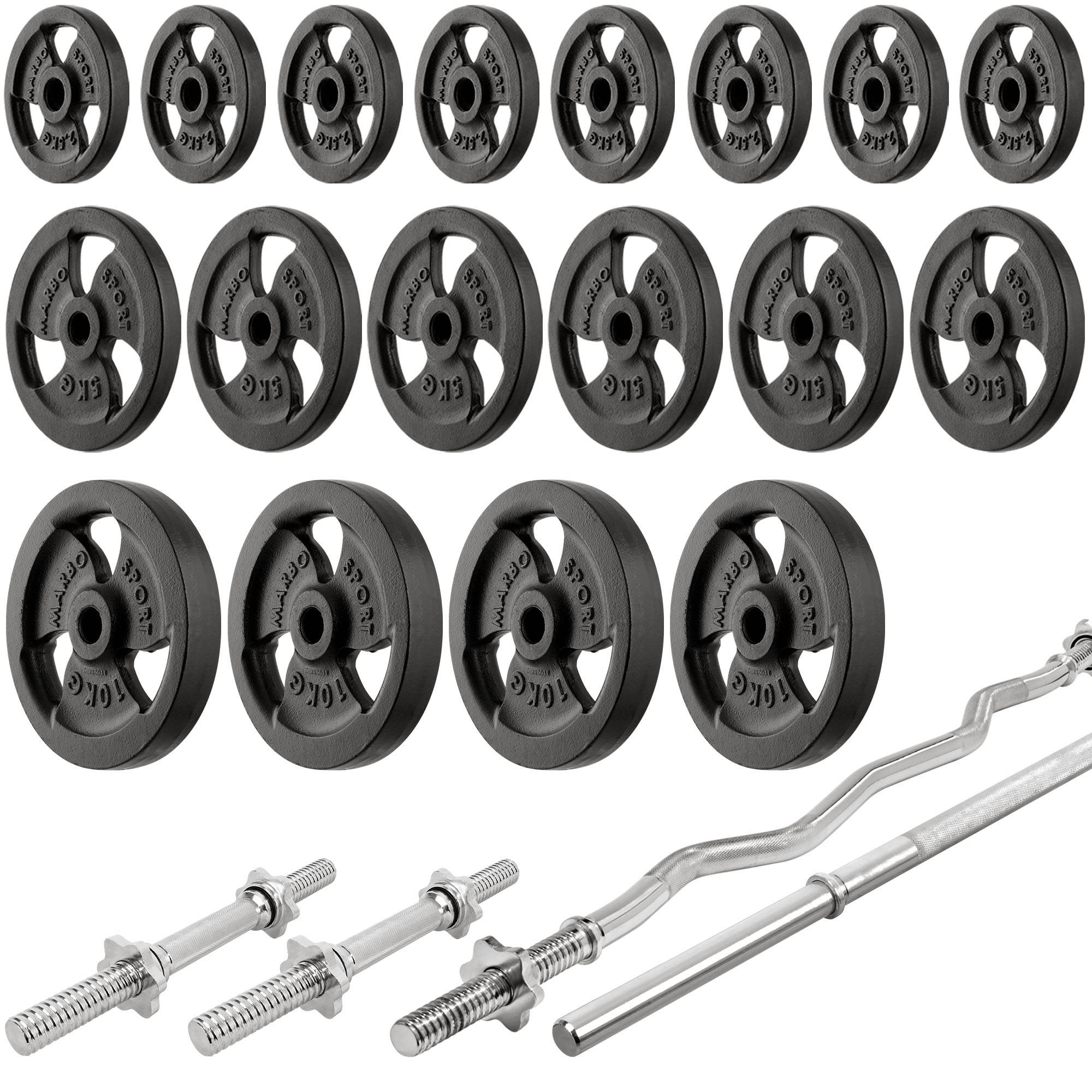 A megerősített rudak és súlyok készlete mindent tartalmaz a hatékony edzéshez.